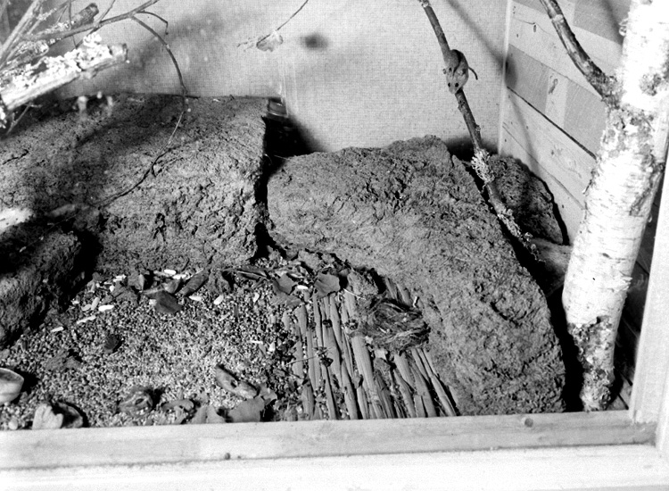 Skogsmus på gren.