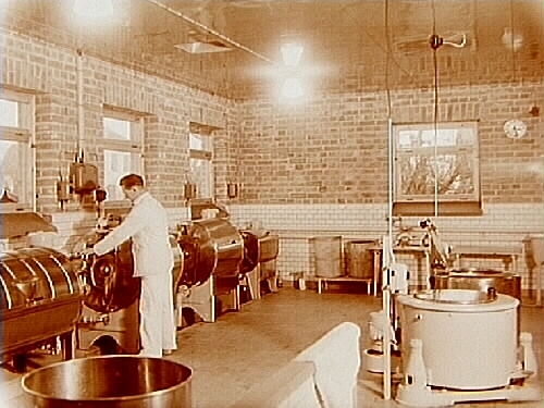 Konsum Almby, tvättslunga, interiör, en man.