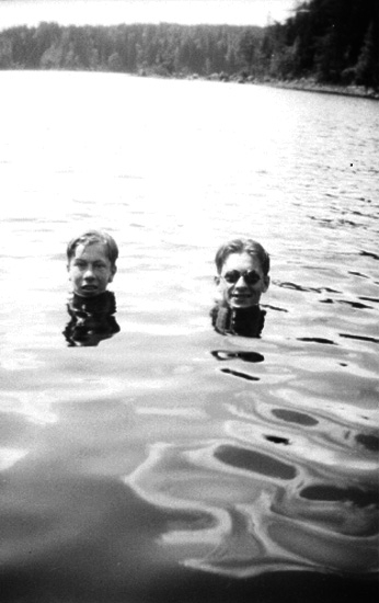 Nattsimning, två män.