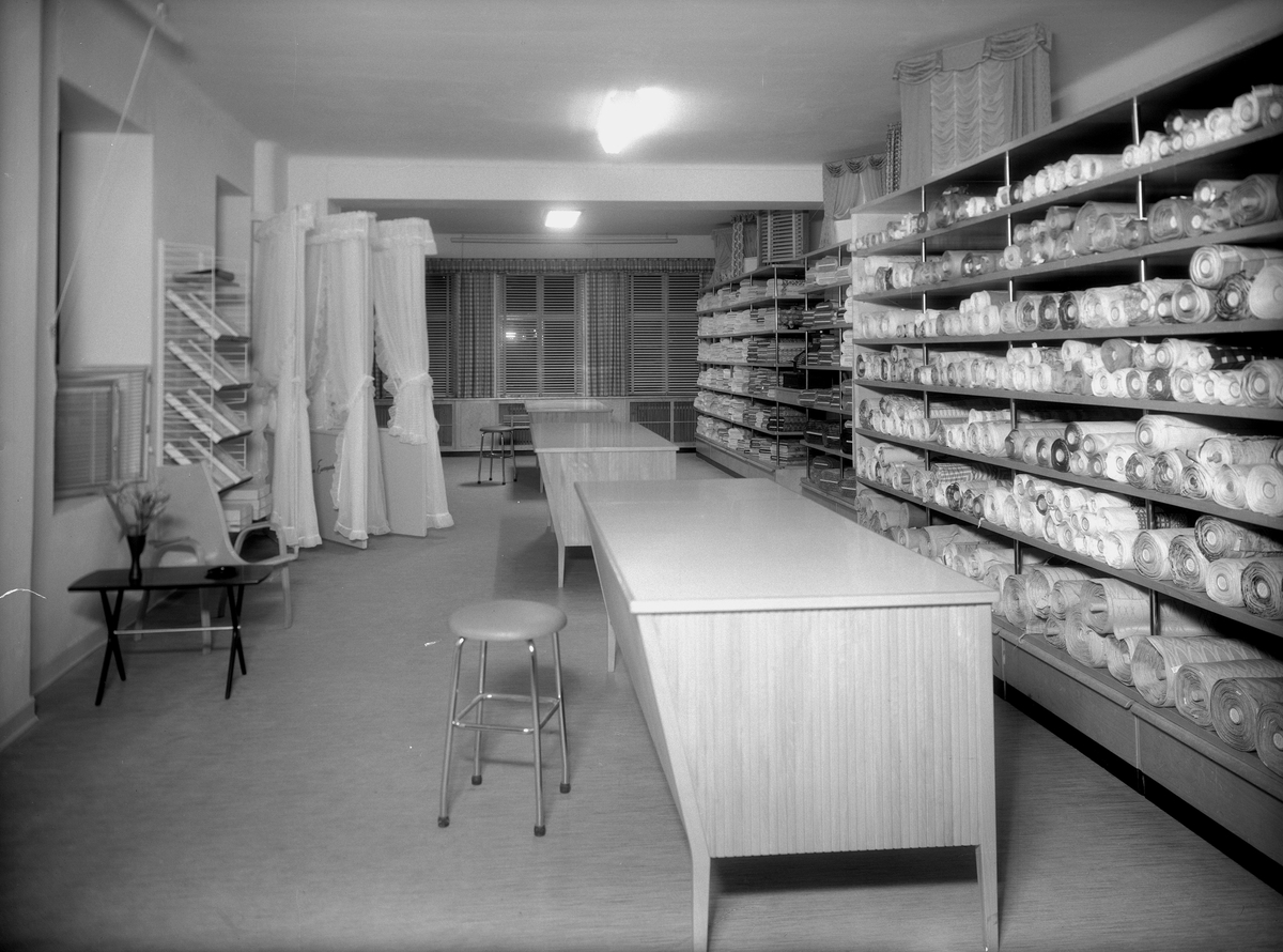 Klaessons Möbelaffär, interiör från gardinavdelningen.