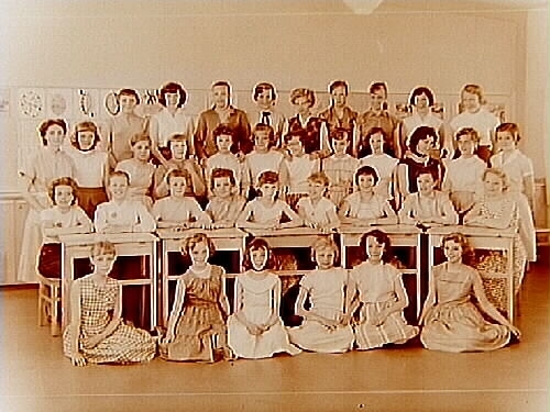 35 flickor och lärarinna fröken Gunnel Hedin.