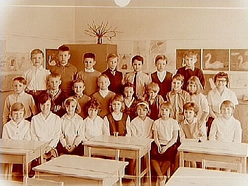 24 skolbarn och lärarinna fröken Karin Ohlsson.