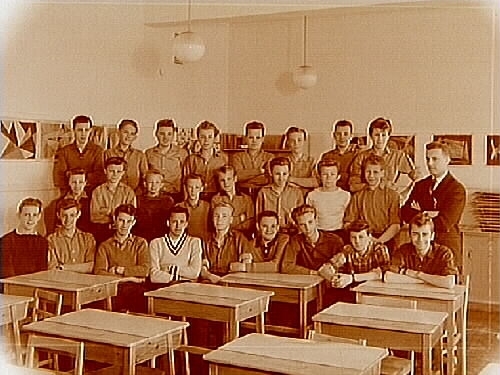 Klassrumsinteriör, elever med lärare Arne Petersson, sal 4 AÖ.