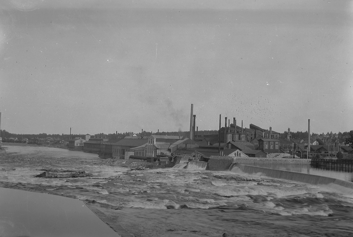 Titel: Stadsvy, bostadshus och fabriksbyggnader. Dalarna