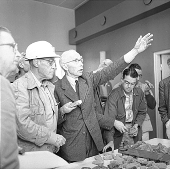 Geologer från hela världen samlade i Mossgruvan, interiör, grupp.