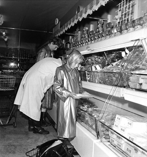Konsum snabbköp, affärsinteriör, kunder och personal.