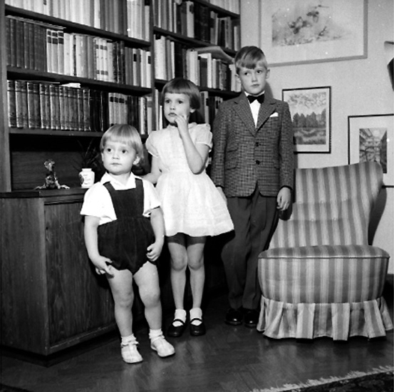 Rumsinteriör, tre barn.