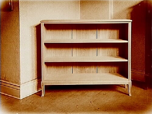 Öppen bokhylla.