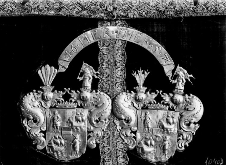 Antependium. Mittpartiet med givarnas Erik Ryning och Maria Elisabeth Kursells vapensköldar i silver.