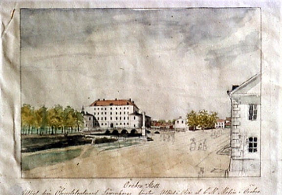 Örebro slott. Akvarell av Westerling, Erik. 1819-1857. Ägare: Uppsala Universitetsbibl (Davidson 5531) 'Örebro i konsten' 1965, katalognr 135. Se även neg.nr 243/66.