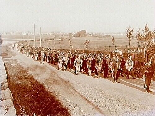 3 komp. Uppställning på Almbyvägen, Almby socken.