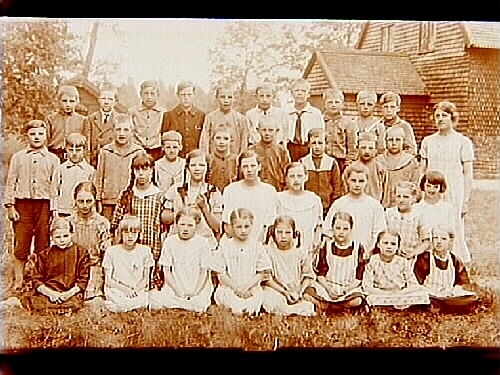 Tångeråsa kyrkskola, 35 skolbarn med lärare.