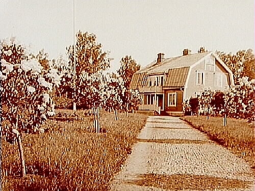 Tvåvånings villa med brutet tak.