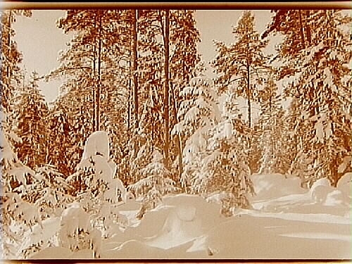 Titel: Vintermotiv, snöhöljda furor och granar.