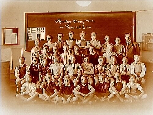 Vasaskolan, klassrumsinteriör, 31 pojkar med lärare Herman Nilsson, sal 6, klass 4.