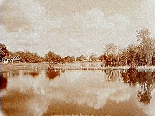 Bäckhammarsdammen, två bostadshus vid dammen.