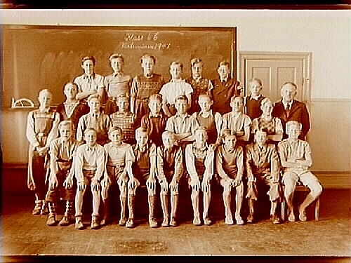 Vasaskolan, klassrumsinteriör, 25 pojkar med överlärare Natanael Liedner, klass 6C, sal 9.