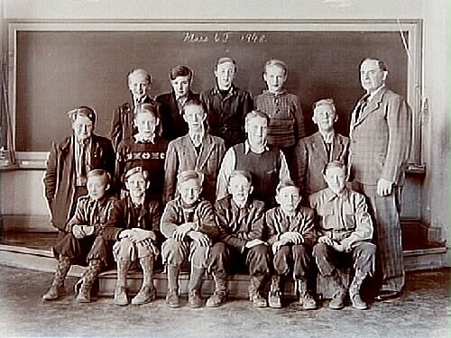 Engelbrektsskolan, klassrumsinteriör, 15 pojkar med lärare David Abenius, klass 6F, sal 19.