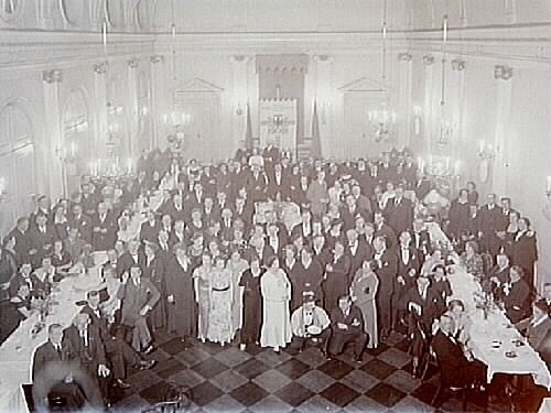 Hantverksföreningens fest i Frimurarlogens festsal, gäster vid bordet.