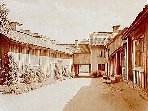 En och två vånings bostadshus. Gårdsinteriör.