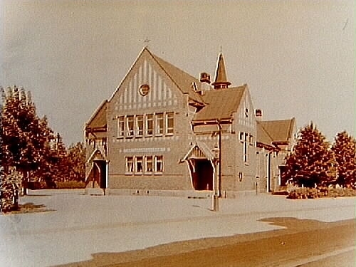 Betlehemskyrkan, frikyrkobyggnad med fasad i rött tegel med vita blinderingar.
