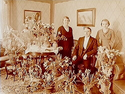 Rumsinteriör, familjegrupp tre personer.