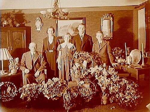Titel: Rumsinteriör, familjegrupp 5 personer. Gustaf Karlssons 50 årsdag.