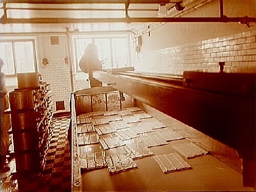Fellingsbro Mejeri, interiör av osttillverkning.