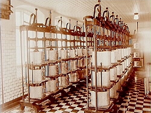 Fellingsbro Mejeri, interiör av osttillverkning.