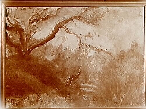 Oljemålning. Motiv: Träd, av konstnären Martin Åberg, 1927.