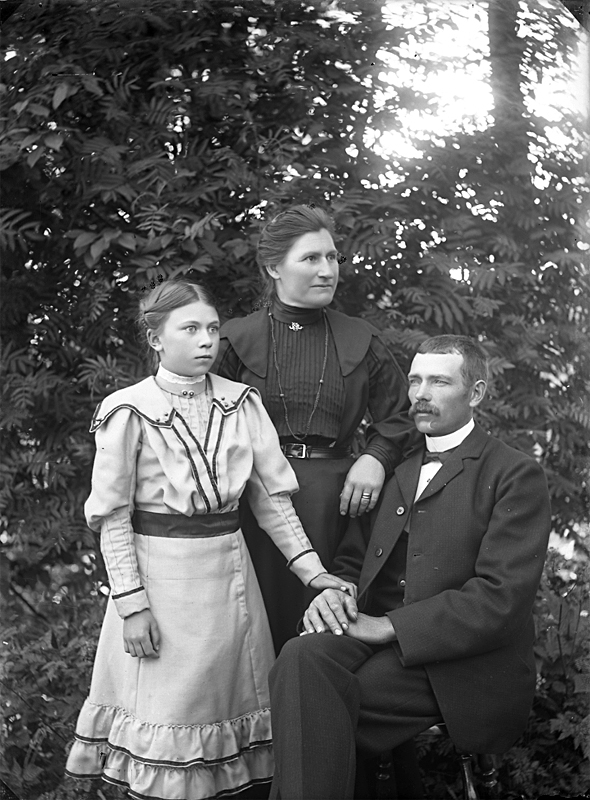 Familjegrupp tre personer.