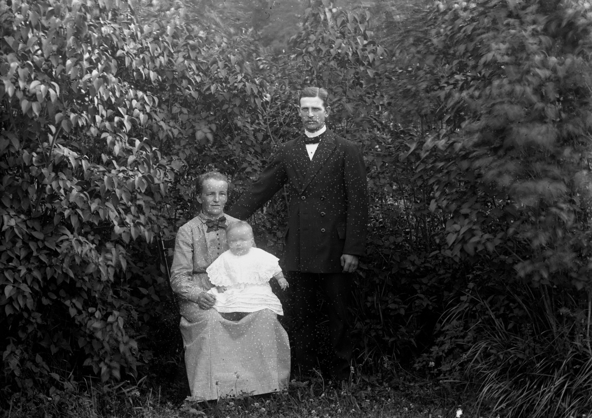 Familjegrupp tre personer.