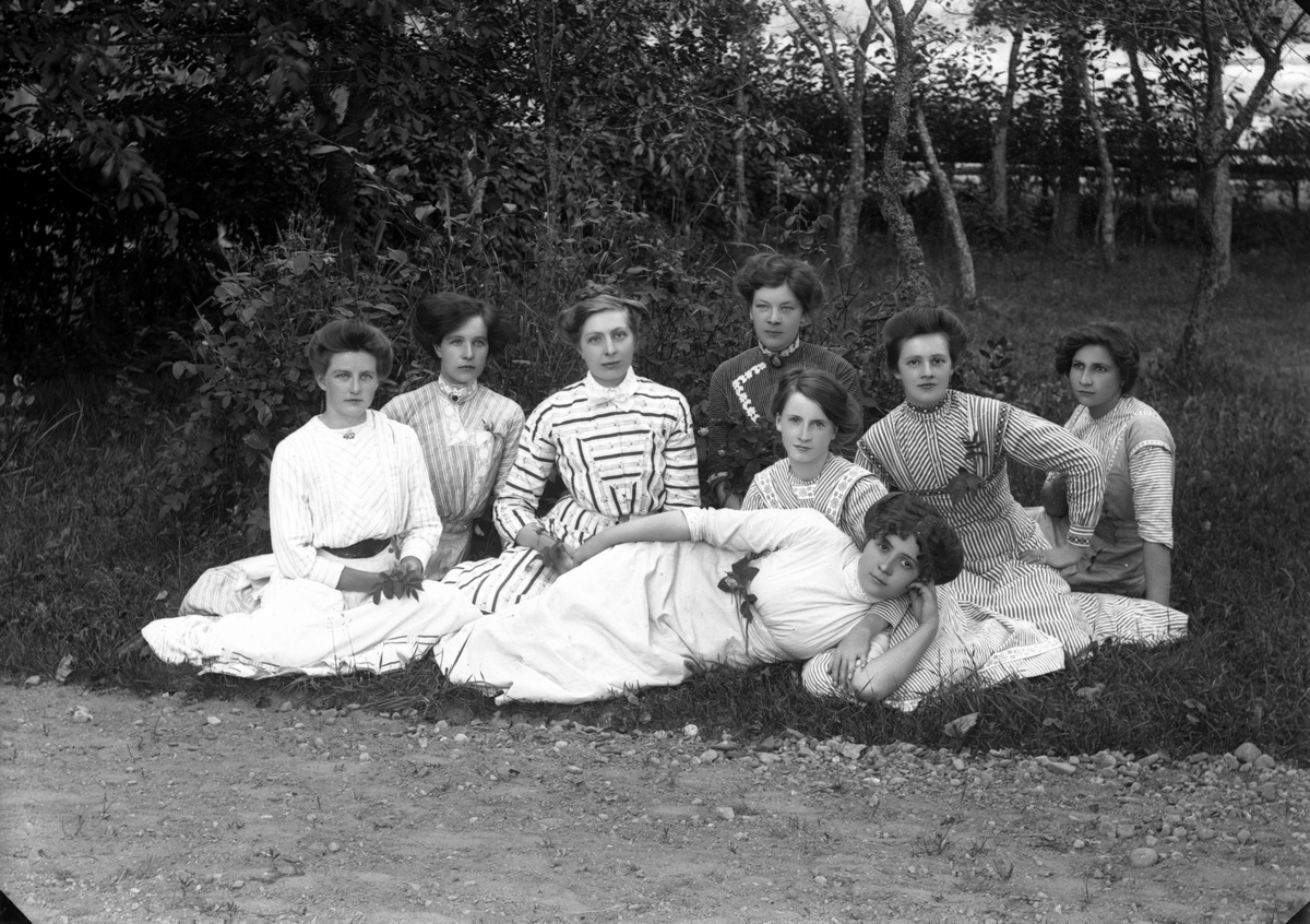 Gruppbild, åtta unga kvinnor.