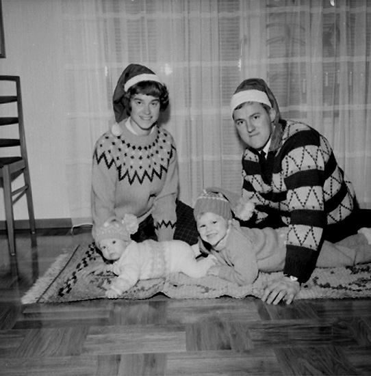 Rumsinteriör, familjegrupp fyra personer.