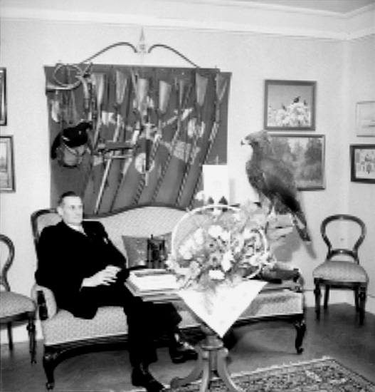 Titel: Karlslunds herrgård, rumsinteriör, en man. Henrik Dieden på 60-årsdagen.