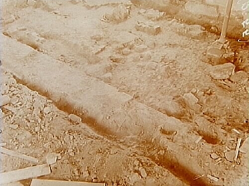 Viby kyrka, utgrävning. Mittmuren, västra delen, från nordväst.