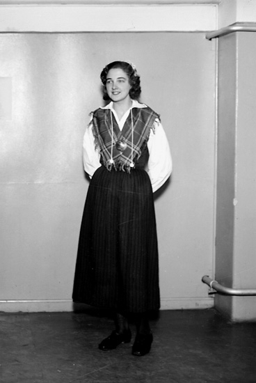 En kvinna i folkdräkt.