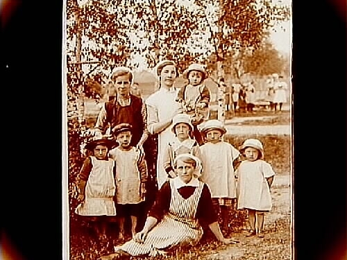 Tre kvinnor och sex barn.