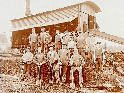 Mosås Brändtorvfabrik. Torvströfabriken och 15 arbetare.