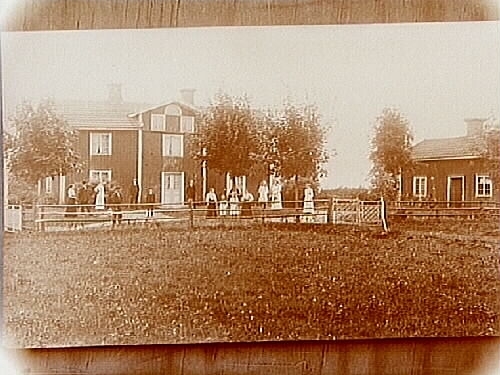 Tvåvånings bostadshus med frontespis, envånings flygelbyggnad.