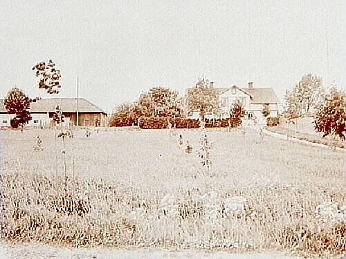 En och en halvvånings bostadshus med frontespis och veranda. Ekonomibyggnader.