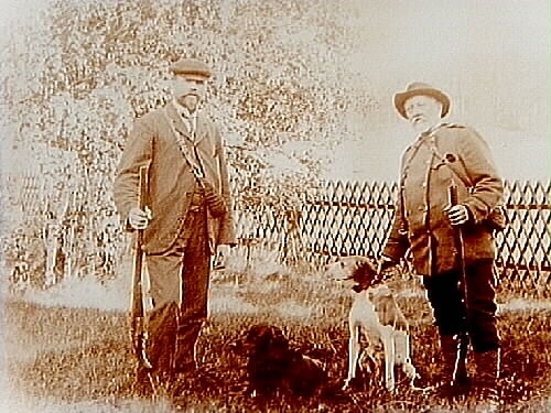 Två jägare med två hundar.