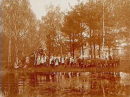 Ökna skola, 41 skolbarn. En och en halvvånings skolbyggnad i bakgrunden.