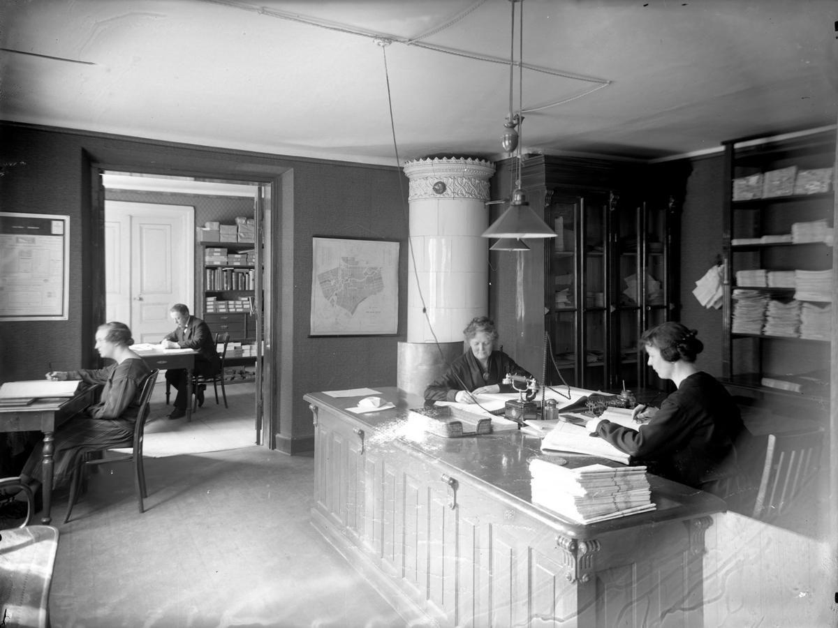 Örebro Dagblad, kontorsinteriör, en man och tre kvinnor.