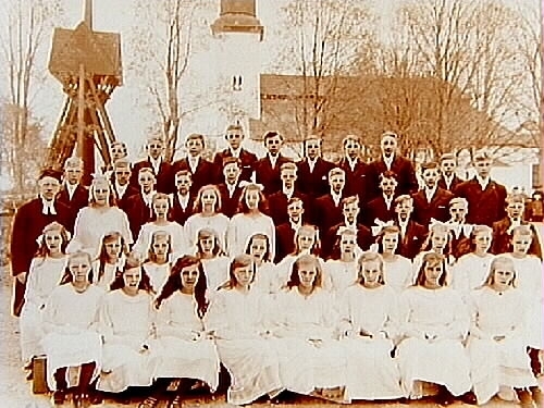 Konfirmander, 23 flickor, 24 pojkar och en präst.