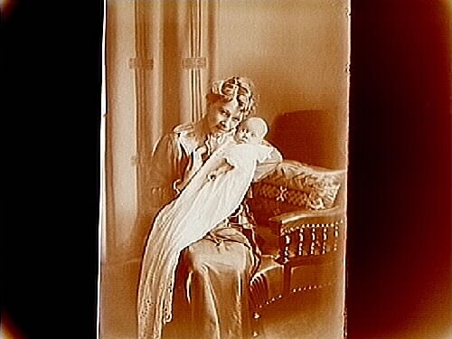 Mor med barn, nyfödd.