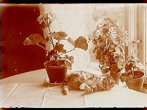 Kattunge bland krukväxter.