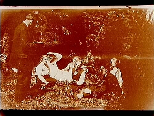 Åtta personer på utflykt i det gröna.