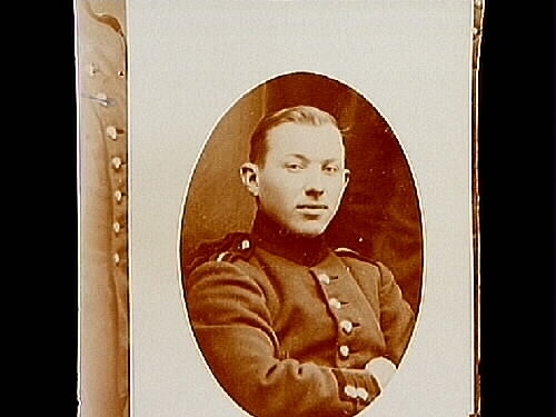 En man i militäruniform, bröstbild.