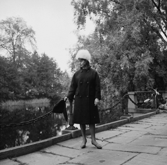 En kvinna. Kläderna från Konsum Damkonfektion.